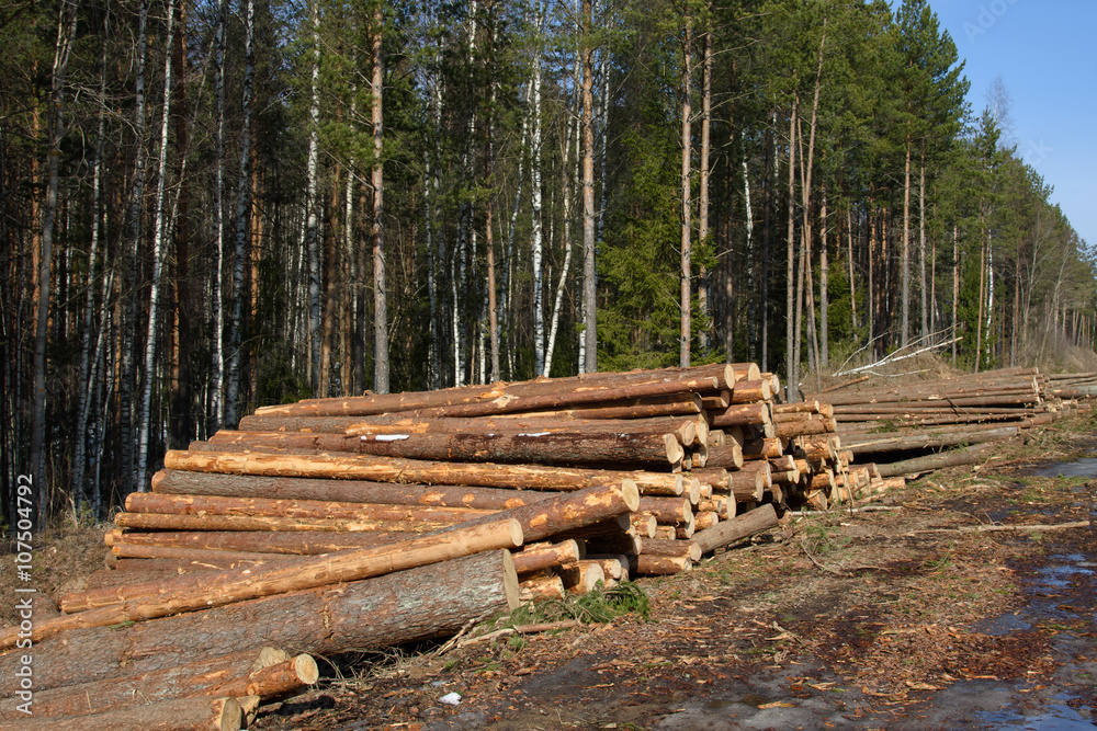 Cut Down The Trees Stacks Of Cut Trees Stacked In The Spring In The Northern Forest Pine Wood Industry Fallen Trees Felling And Cutting Of Forests Supply Of Tree Trunks Stock Photo